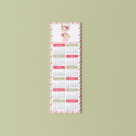 2026 Reindeer Calendar Bookmark