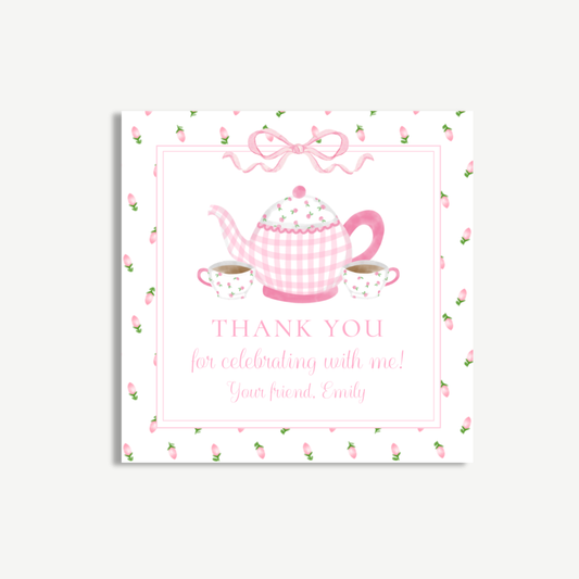 Tea Party Birthday Favor Tag – Printable Pink Gingham 3x3