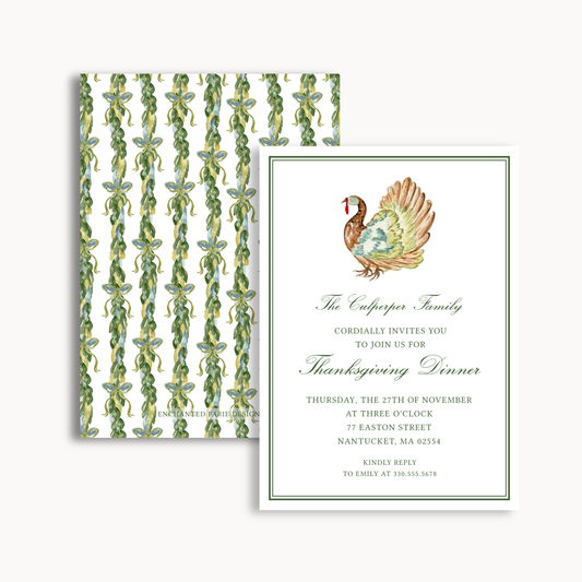 Thanksgiving Dinner Invitation – Elegant Turkeys & Laurel Design 5x7"
