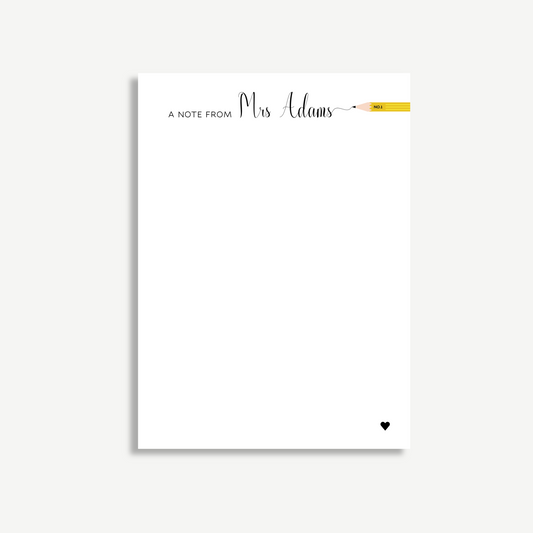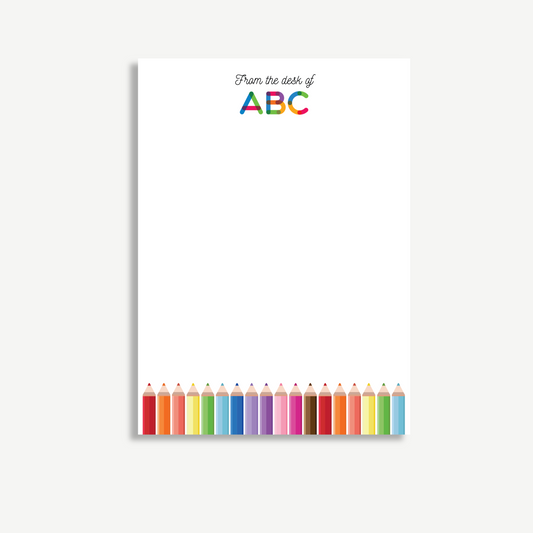 ABC Teacher Desk Notepad – Colorful Pencil Stationery | 5x7 Personalized Notepad