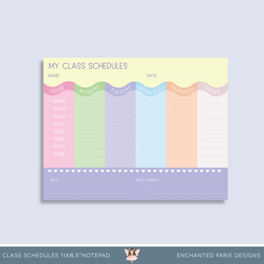 Pastel Class Schedule Notepad – Weekly Planner for Students & Teachers