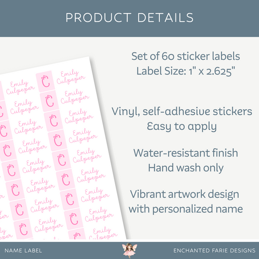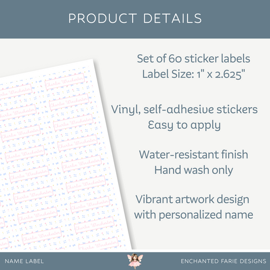 Personalized School Name Labels - Water Resistant - Set of 60 - Bow Monogram