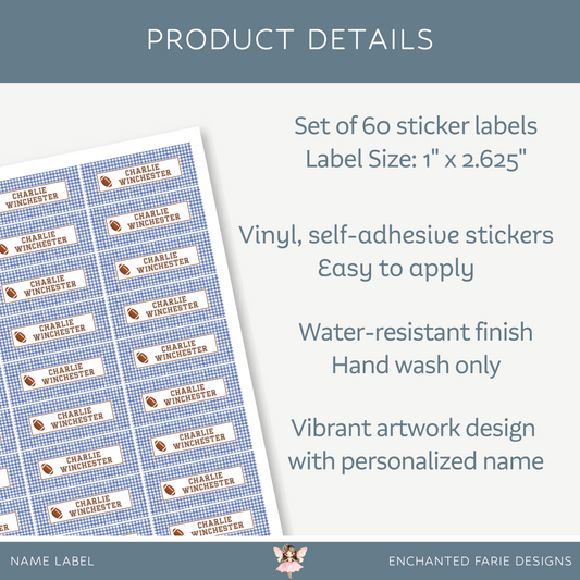 Personalized School Name Labels - Water Resistant - Set of 60 - Football