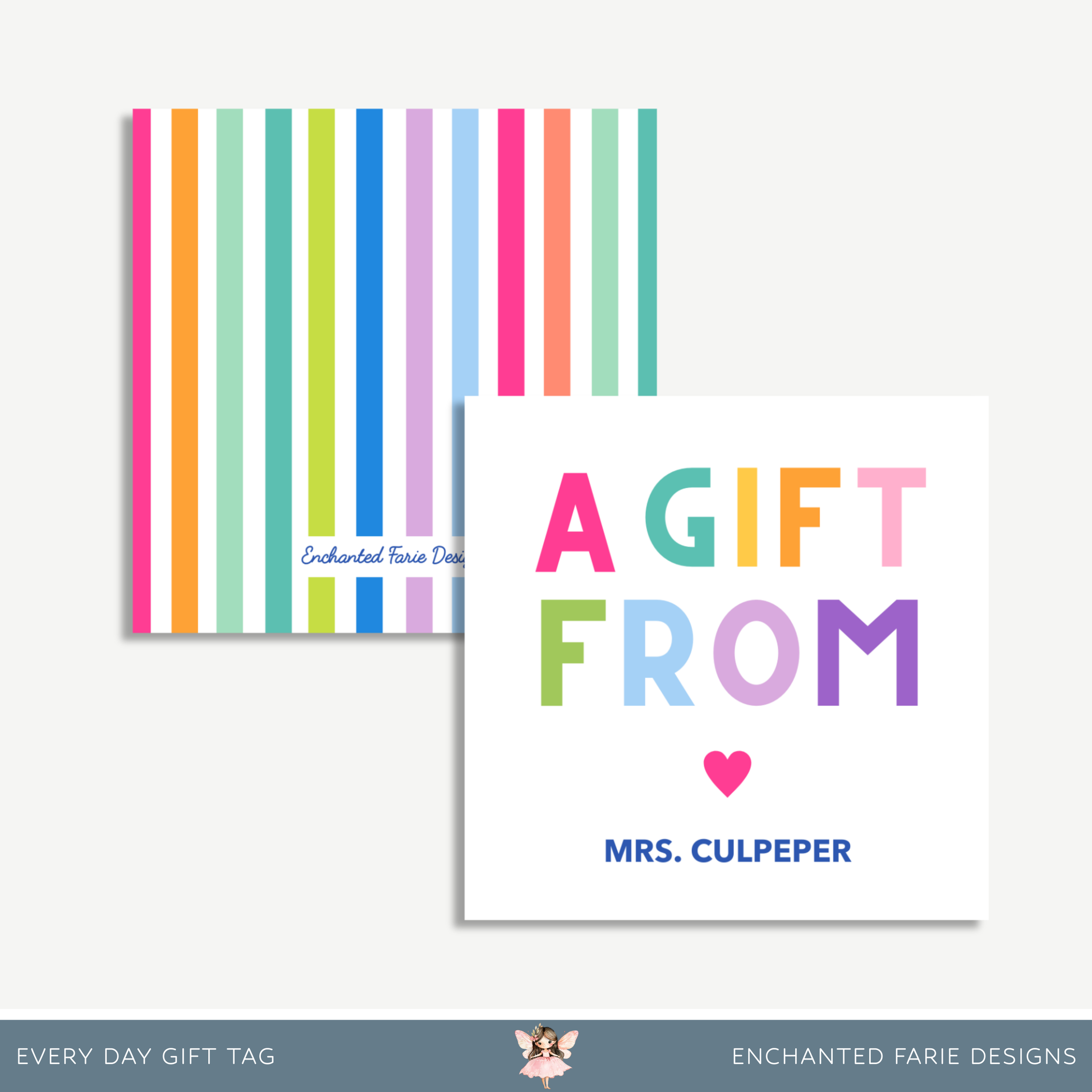 Brighten every gift you give with this colorful "A Gift From" favor tag, perfect for teachers, caregivers, and anyone who wants to add a sweet personal touch! This vibrant 3x3" tag features playful rainbow typography with space to personalize with your name. Whether you're gifting classroom supplies, birthday treats, or holiday surprises, this tag makes every gesture extra special.