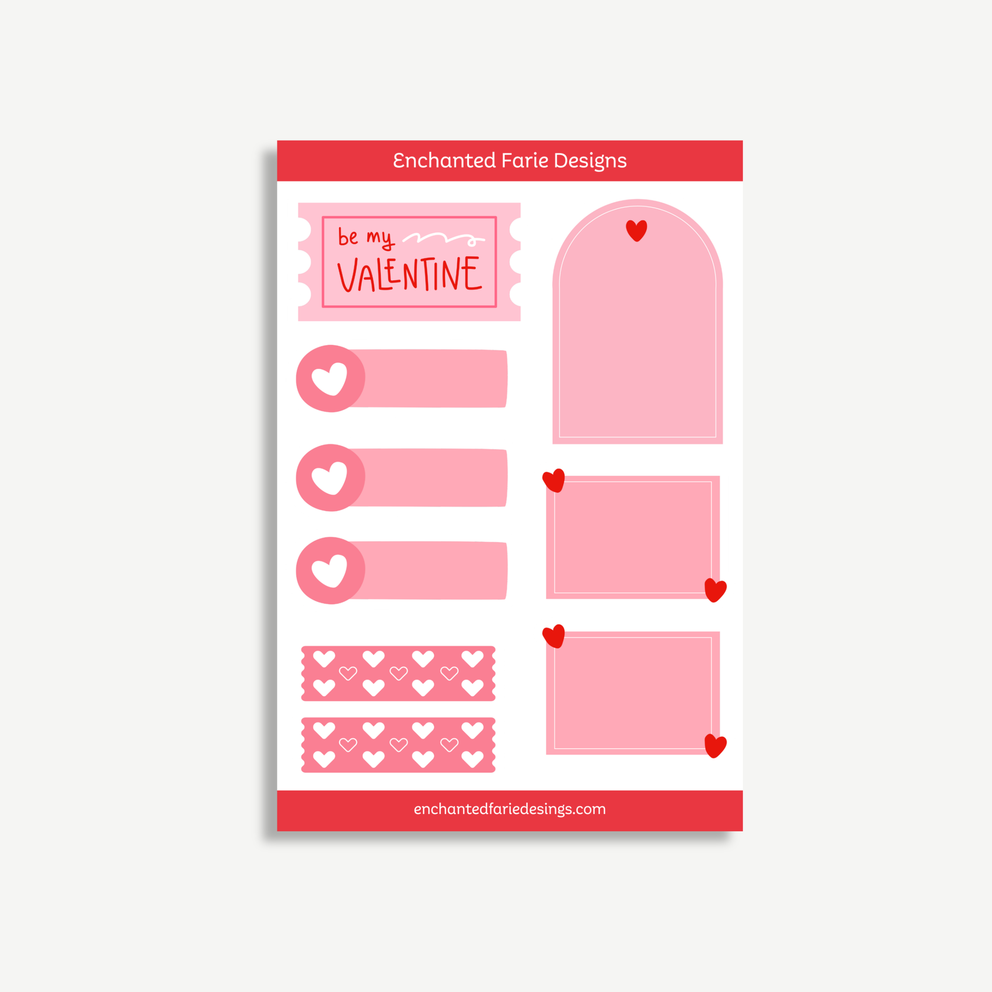 Filled with soft pinks, hearts, labels, and Valentine-inspired accents, this sticker sheet is perfect for decorating planners, journals, scrapbooks, and happy mail. Whether youâre planning February spreads, writing love notes, or creating cozy stationery moments, these stickers bring charm, warmth, and joy to every page.