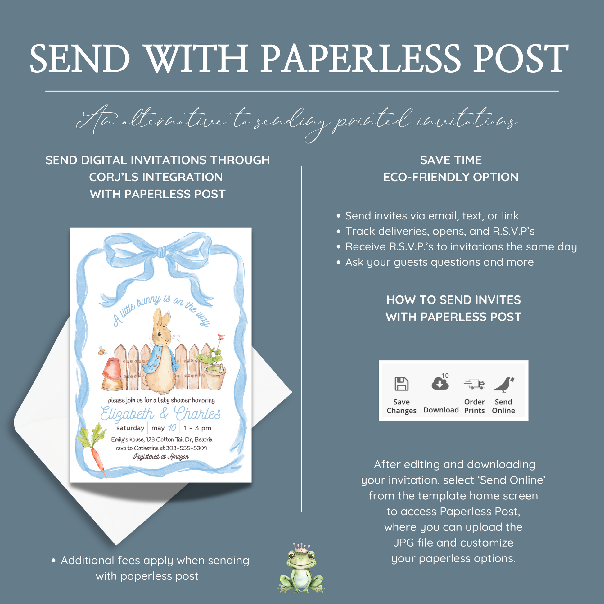 4. Send Digitally – Use Corjl’s integration with Paperless Post to send your invitations electronically. This option is available directly from your template screen.