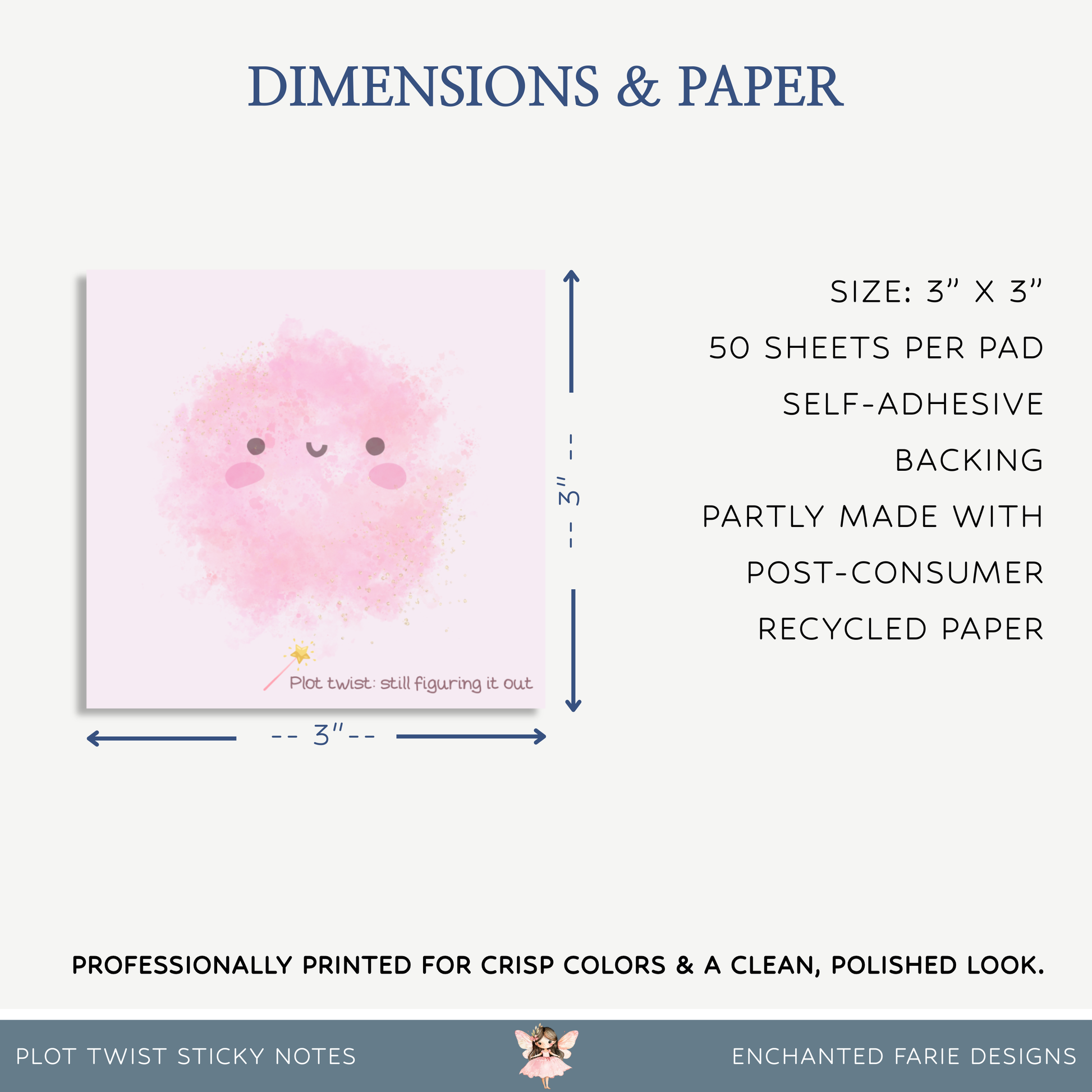 Add a little humor and magic to your day! These 3x3" pastel pink sticky notes feature an adorable smiling cloud and the phrase “Plot twist: still figuring it out.” Perfect for dreamers, students, or anyone balancing life’s to-do list with a touch of grace and glitter. Professionally printed with soft watercolor texture and self-adhesive backing, these sticky notes make every reminder feel a little more whimsical.