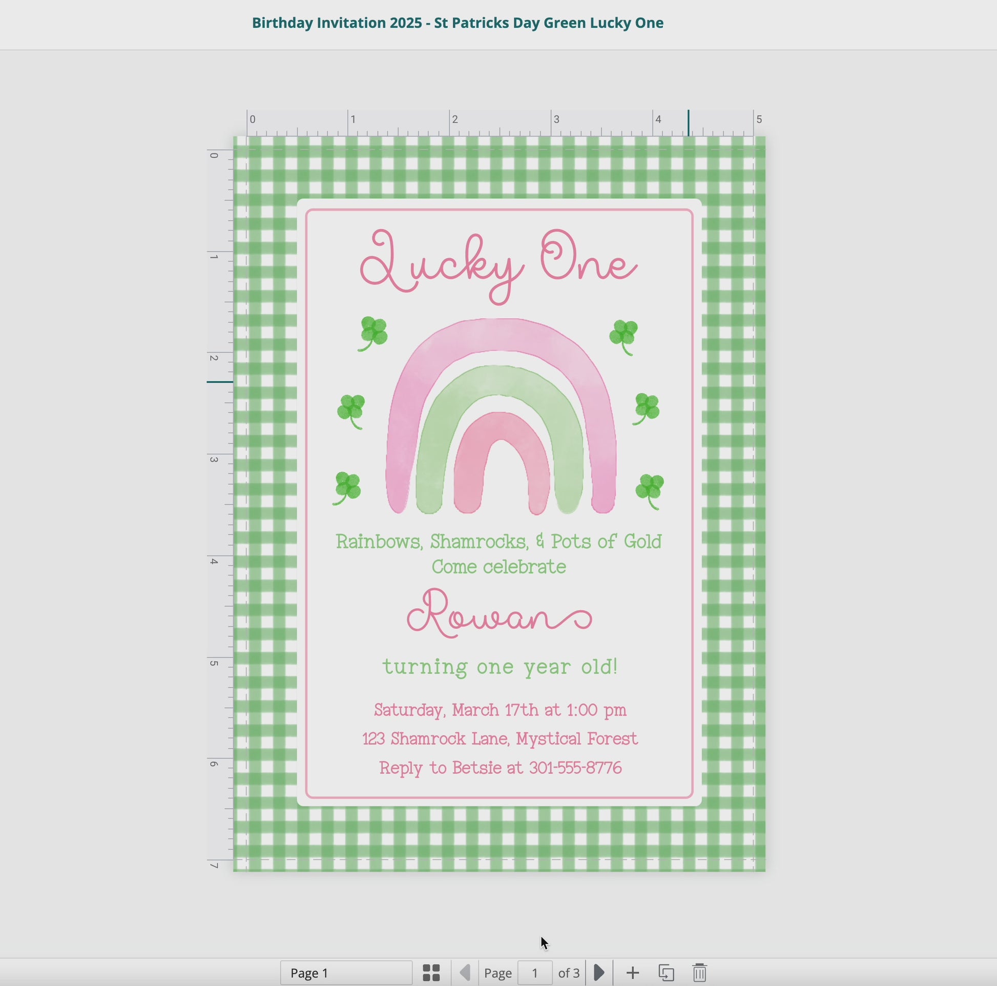 Personalize your 5"x7" watercolor green and pink St. Patrick's Day themed Lucky One birthday invitation right from home! Easily self-edit your invitation template, then download and print!