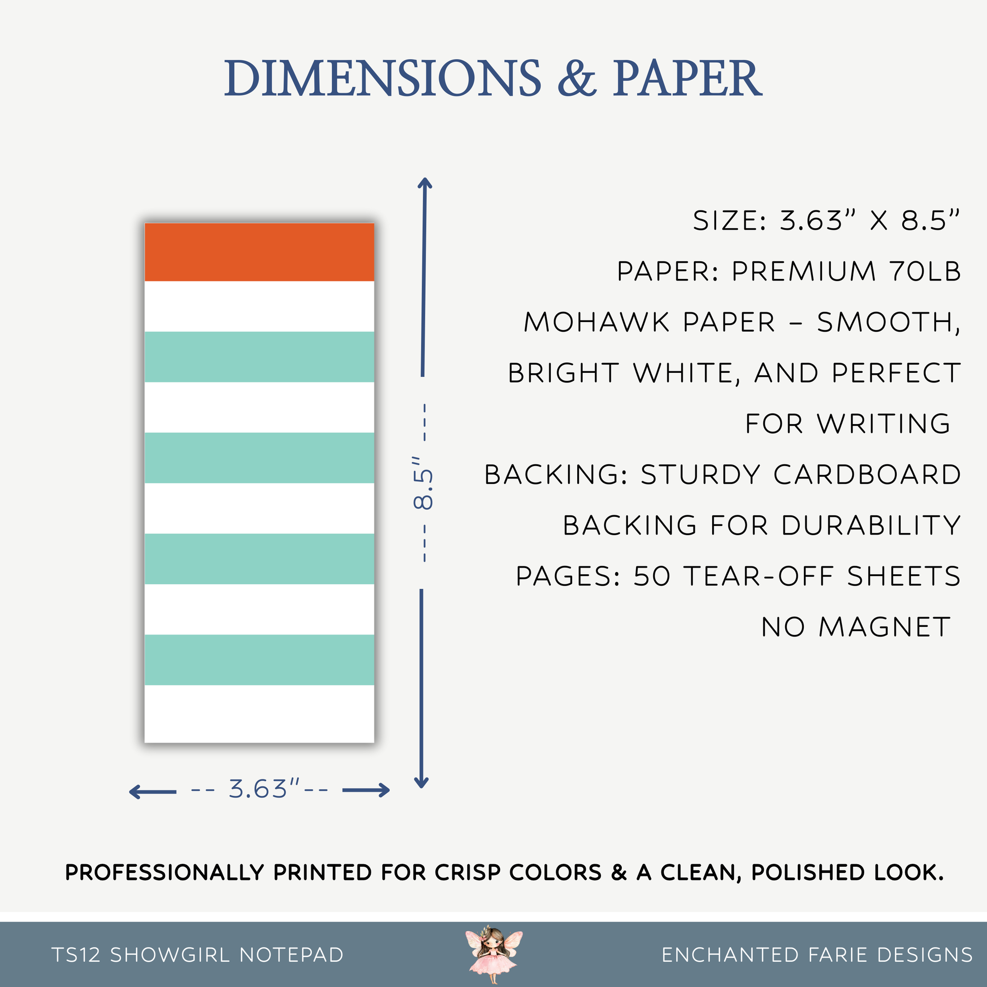 Bold, playful, and effortlessly chic - this Showgirl Stripe Notepad brings a pop of personality to your daily lists. Inspired by the vibrant energy of TS12 showgirl style, this notepad features crisp mint stripes paired with a statement orange header for a look that’s equal parts fun and functional.